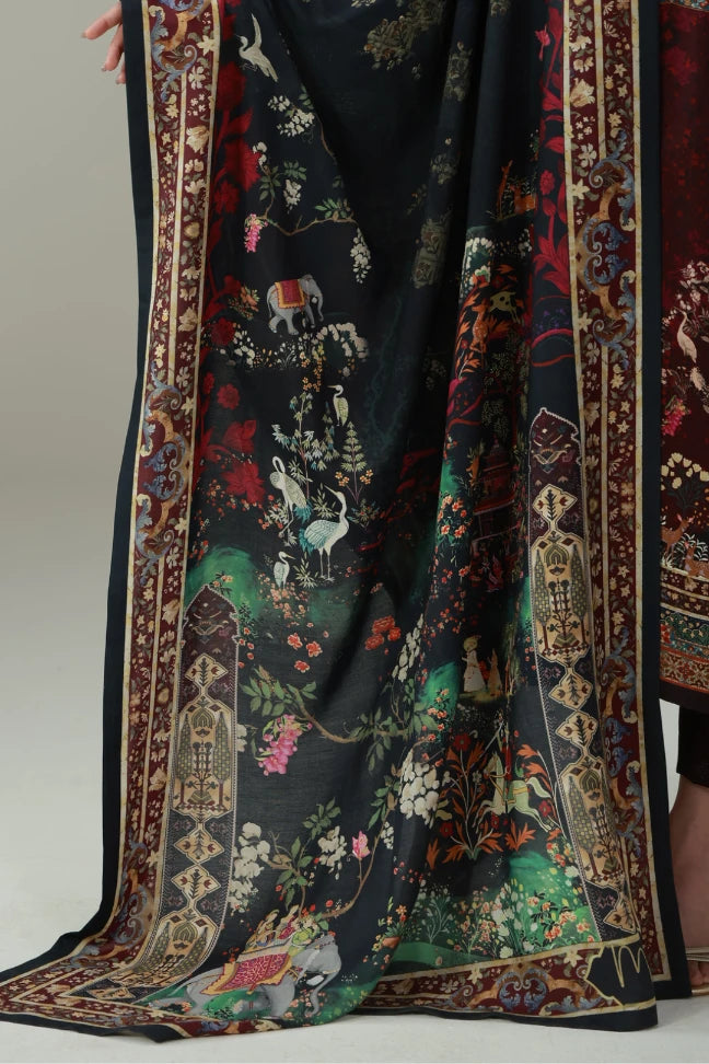 Meena Shawl, made from Premium Viscose, features images of birds and flowers.