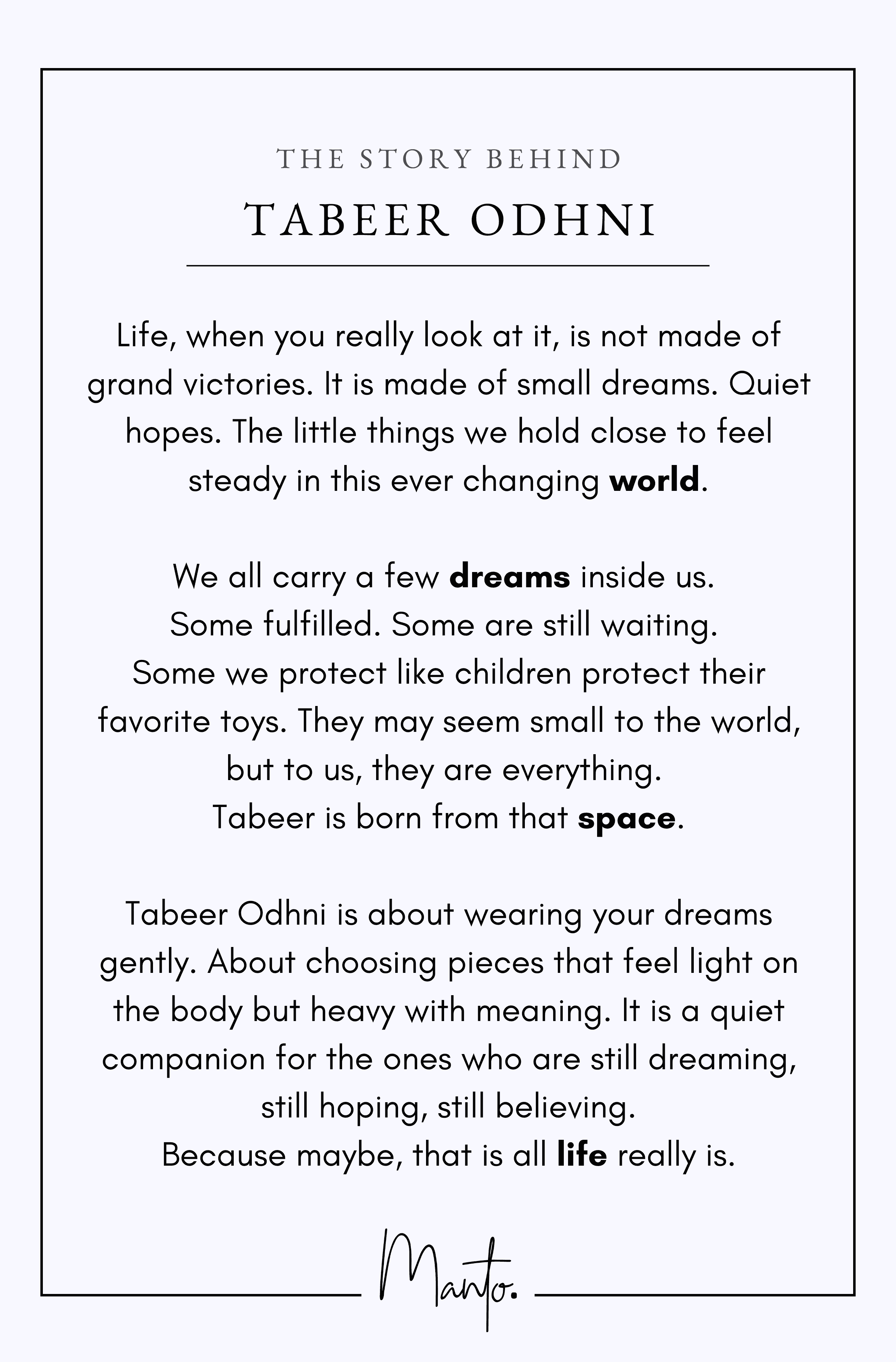 We all carry a few dreams inside us. Some fulfilled. Some are still waiting. Some we protect like children protect their favorite toys. They may seem small to the world, but to us, they are everything. Tabeer is born from that space.