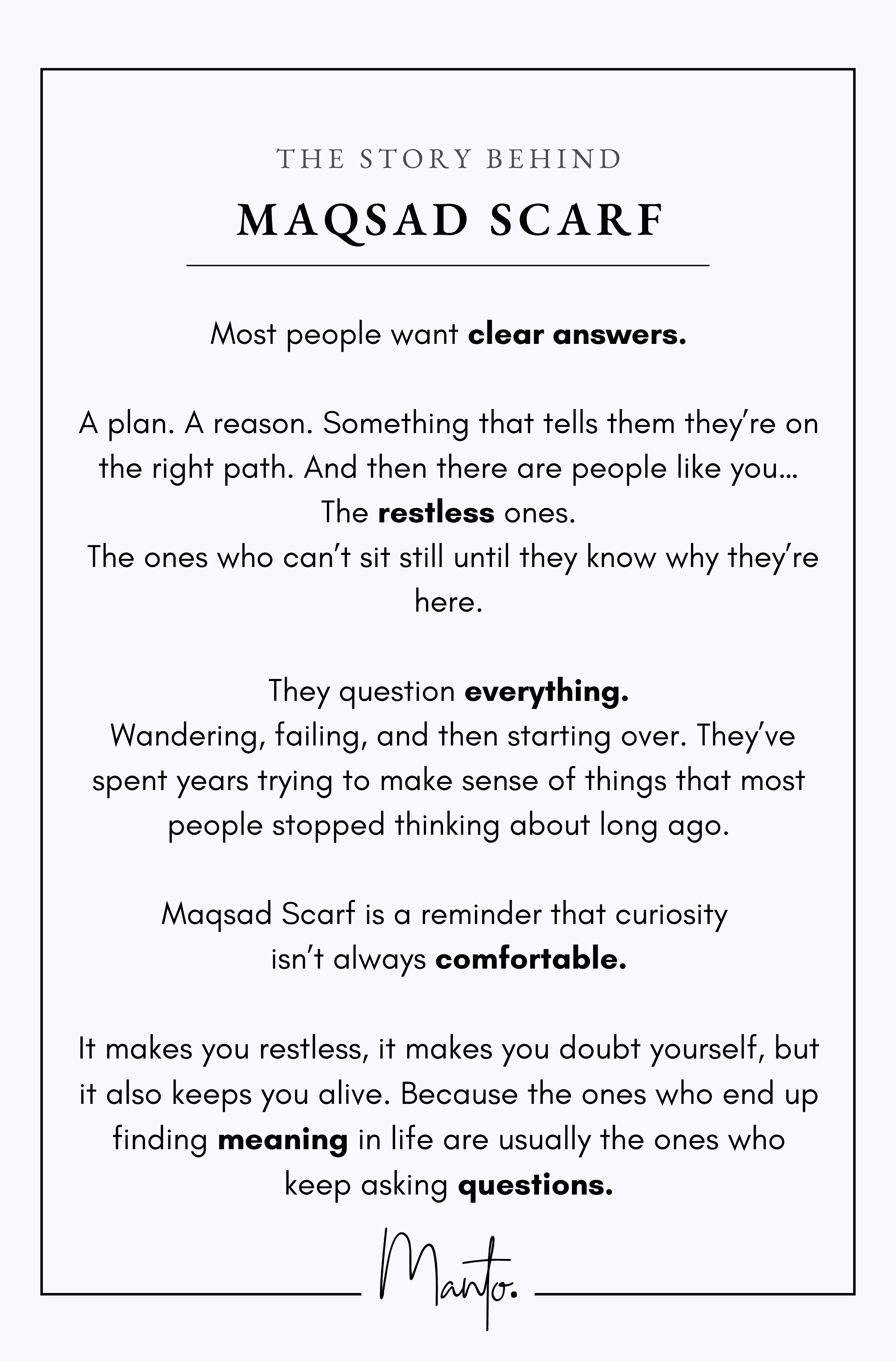 Maqsad Scarf is a reminder that curiosity isn’t always comfortable.