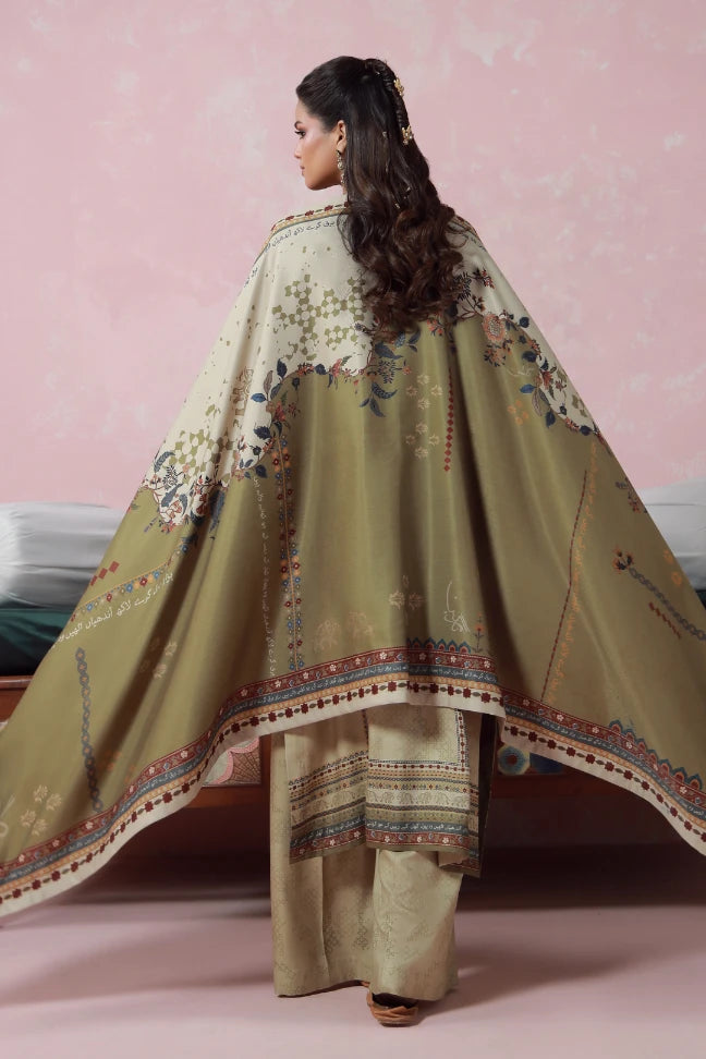 Musarrat Shawl is a double-sided shawl, featuring the words of Sahir Ludhianvi calligraphed throughout.