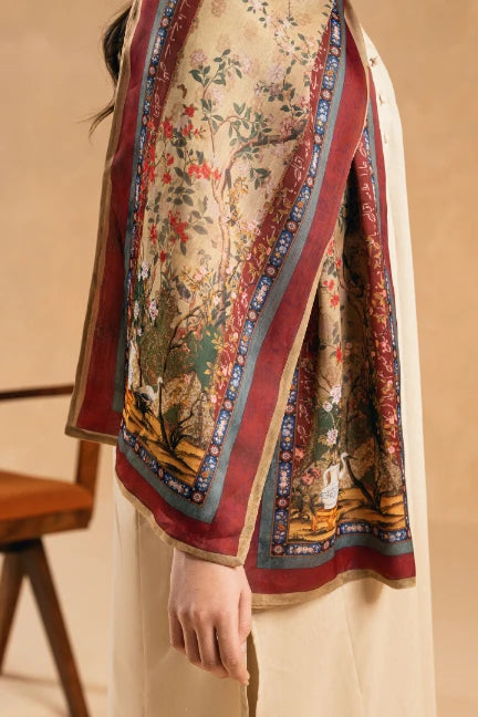 Nawazish Stole is crafted from crinkle silk in a rich green base, calligraphed with Allama Iqbal’s poetry.