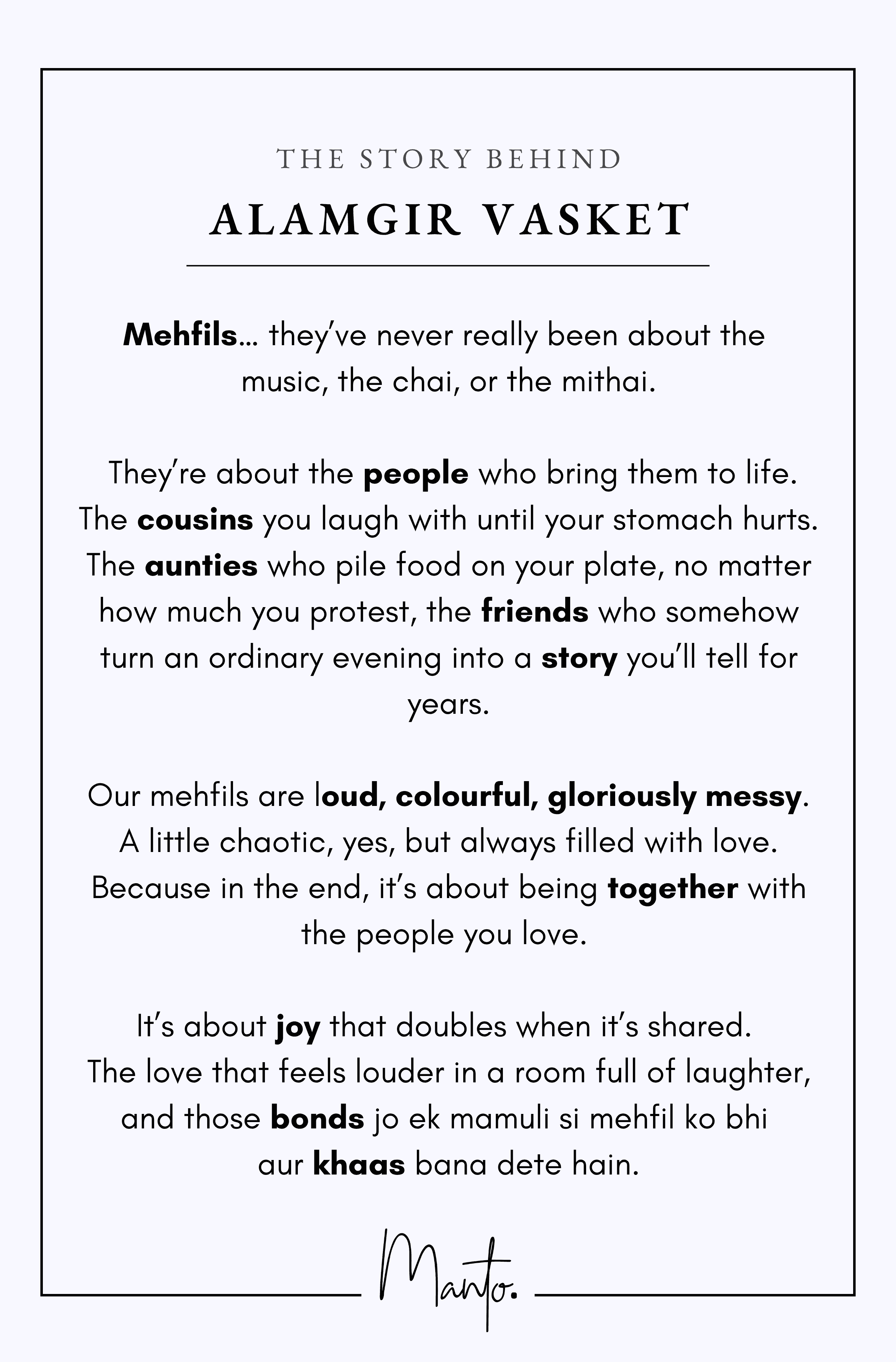 Mehfils… they’ve never really been about the music, the chai, or the mithai. They’re about the people who bring them to life. The cousins you laugh with until your stomach hurts. The aunties who pile food on your plate, no matter how much you protest, the friends who somehow turn an ordinary evening into a story you’ll tell for years.
