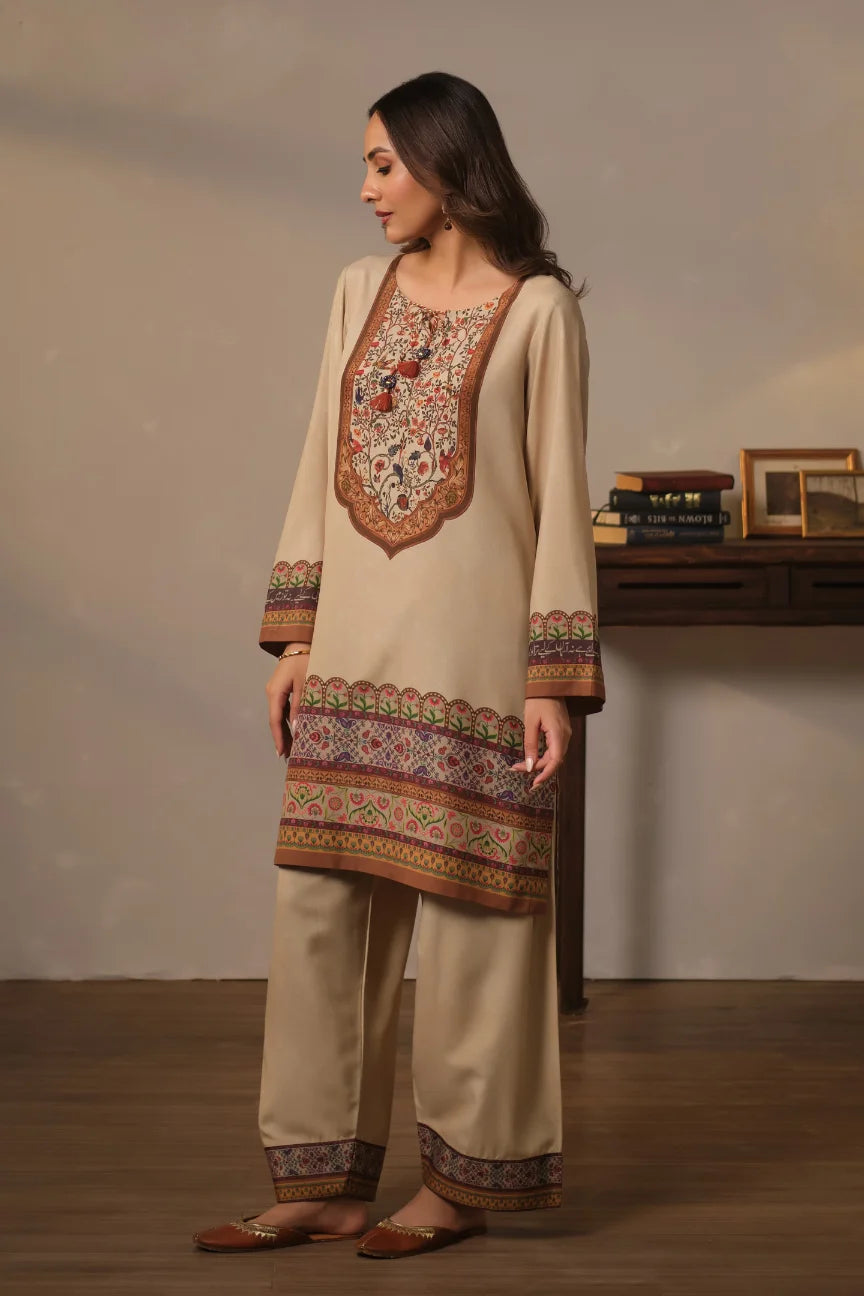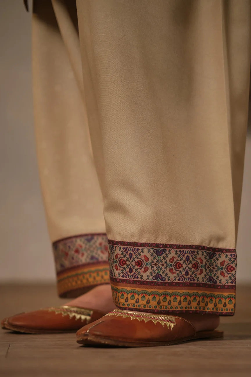 The Qissa Co-Ord Set is a 2-piece set made using Blended Cambric, paired with a farshi shalwar. This Co-Ord features the words of Sahir Ludhianvi.
