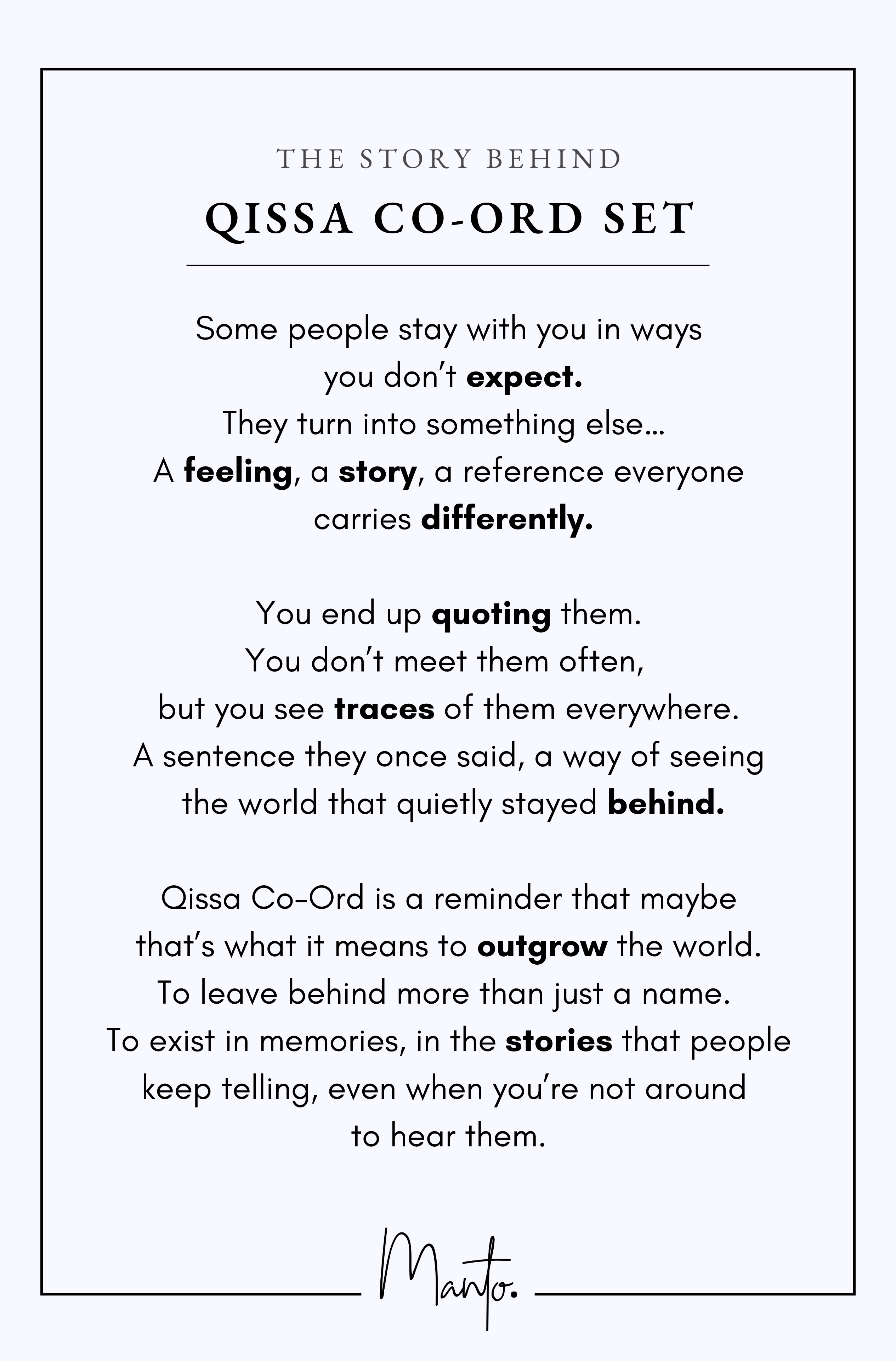 Qissa Co-Ord is a reminder that maybe that’s what it means to outgrow the world. To leave behind more than just a name. To exist in memories, in the stories that people keep telling, even when you’re not around to hear them.