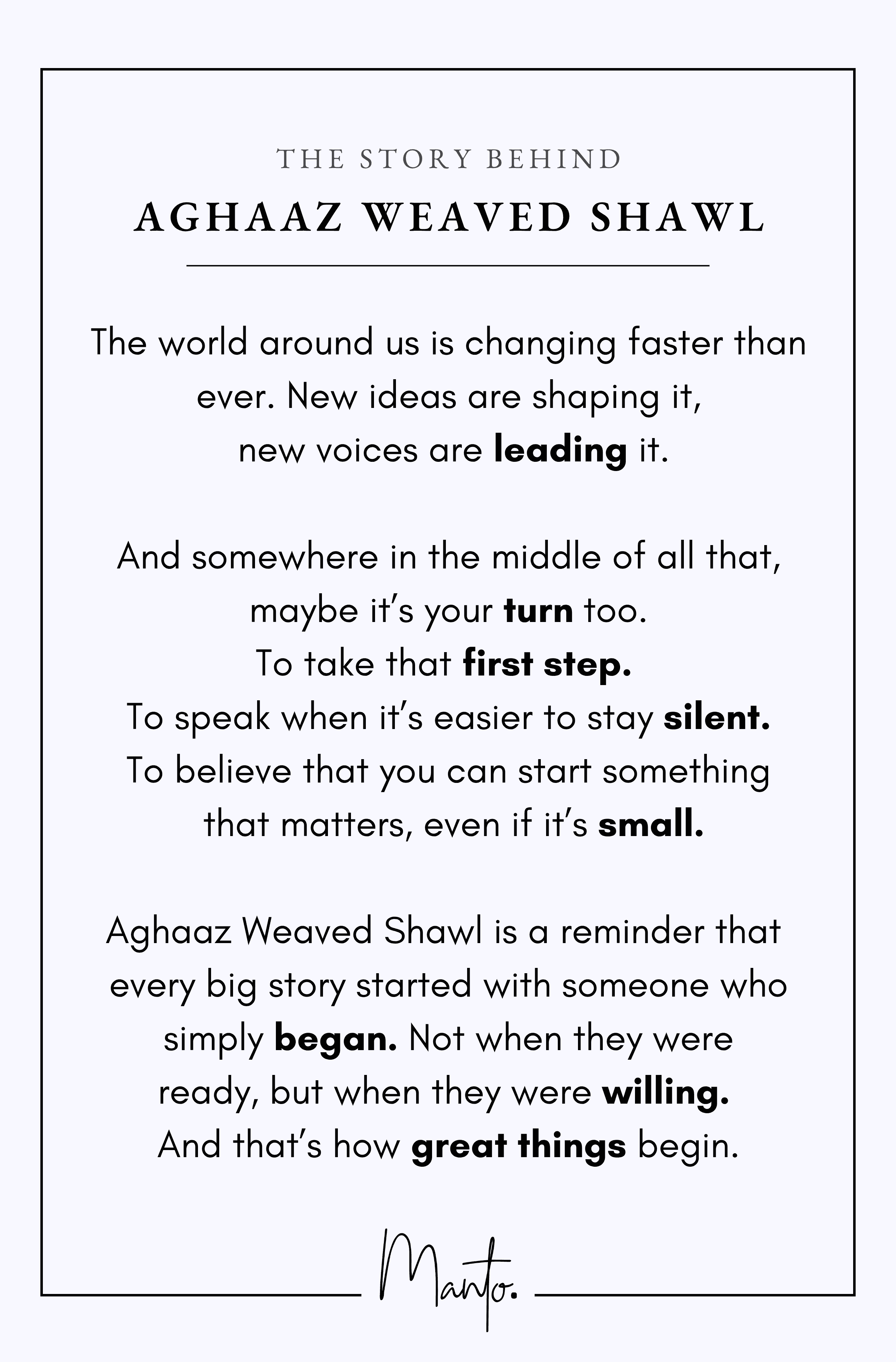 Aghaaz Weaved Shawl is a reminder that every big story started with someone who simply began. Not when they were ready, but when they were willing. And that’s how great things begin.