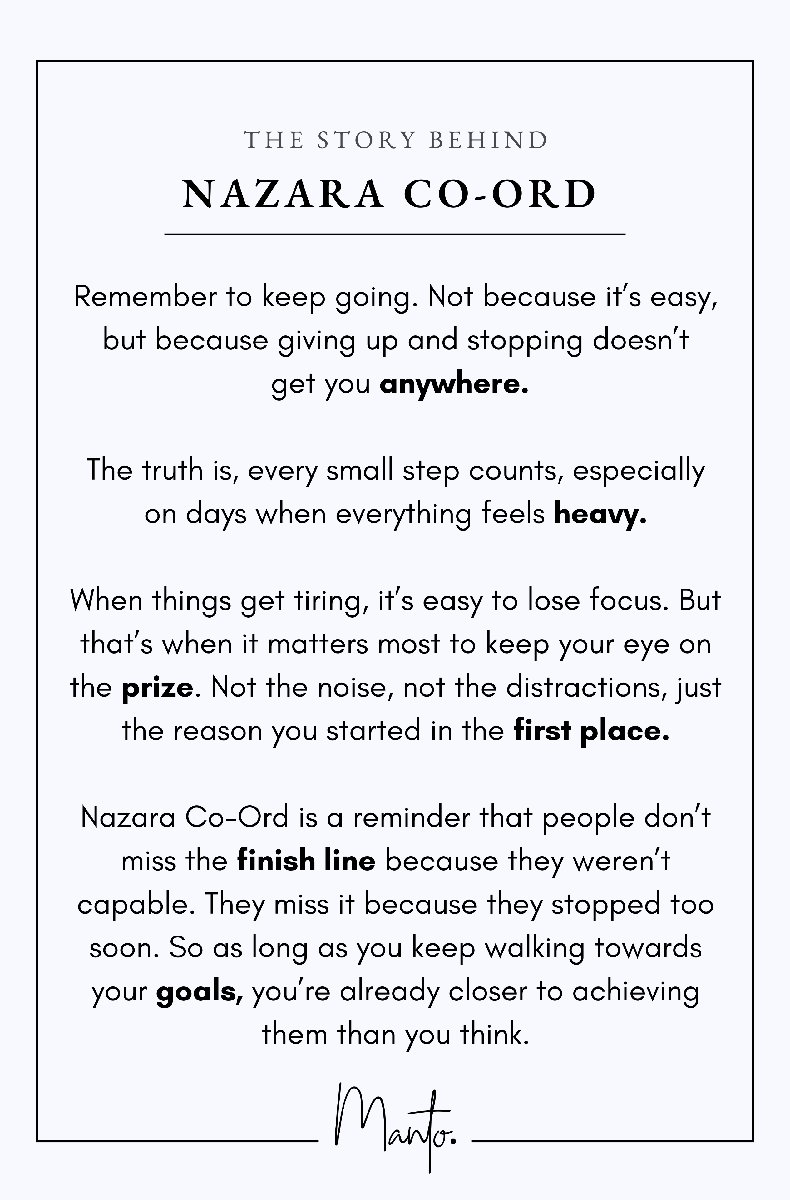 Nazara Co-Ord is a reminder that people don’t miss the finish line because they weren’t capable. They miss it because they stopped too soon.